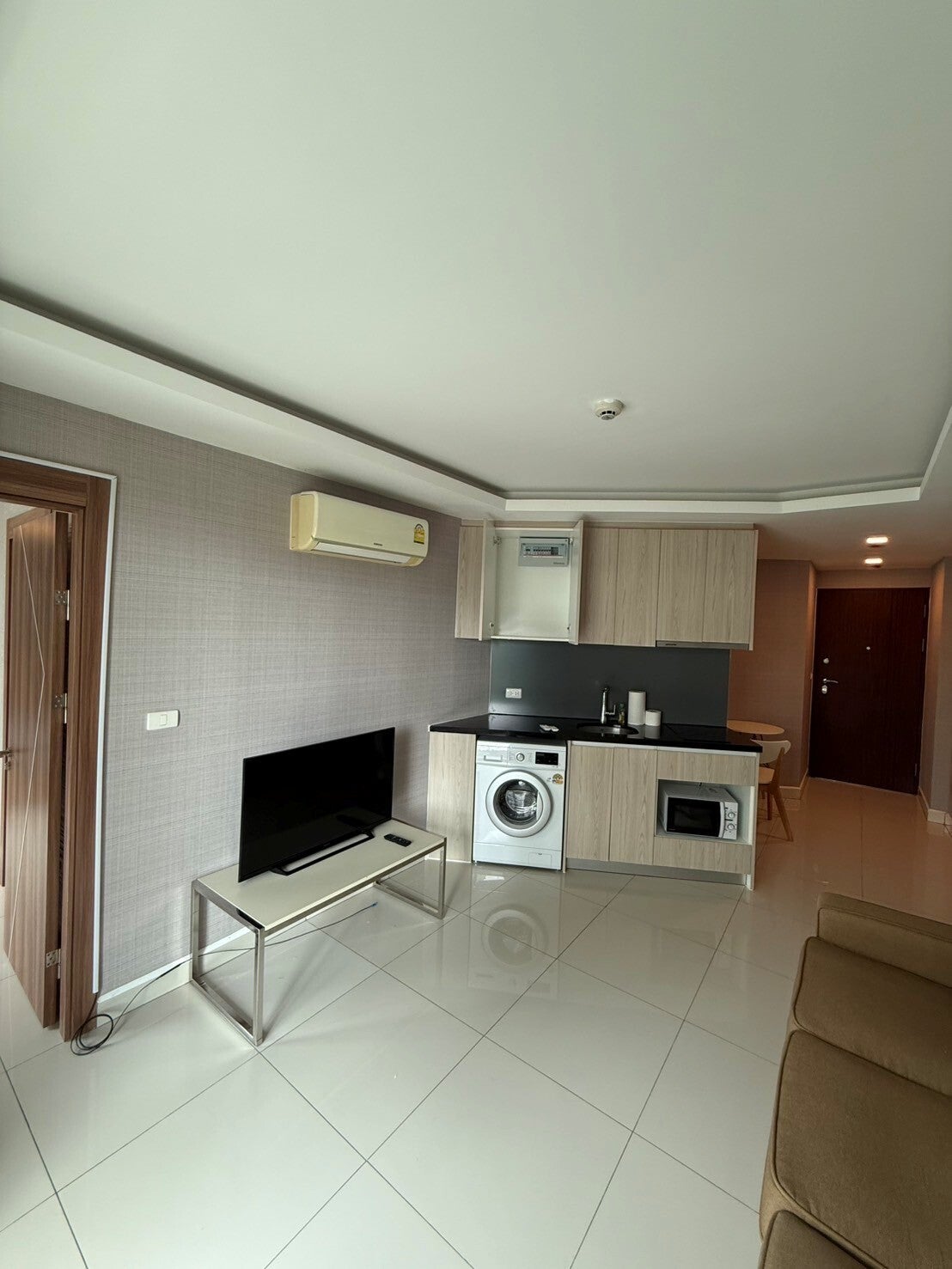 Ready to move in, includes washing machine, TV, and 2 air conditioners. Rent is 15,000 THB per month. 2 months deposit required (45,000 THB total).